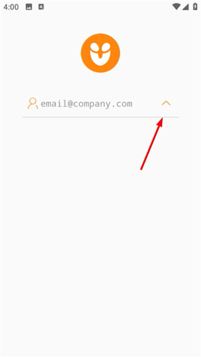 1、打开APP初始登录界面,顶部展示橙色品牌图标,输入框默认填入邮箱格式账号,点击输入框右侧向上箭头,展开完整密码输入区域。