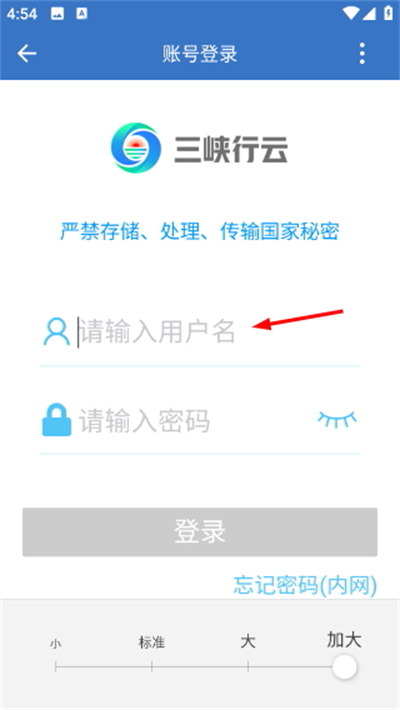 4、字体设置为加大档位后,页面整体文字字号变大,用户名和密码输入框等界面文字显示更为清晰,方便使用者查看和后续进行账号登录操作。