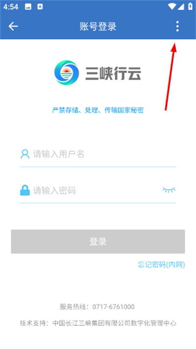 1、打开三峡行云账号登录页面,找到页面右上角的三点图标,点击该图标即可展开更多功能操作选项,准备进行下一步相关设置。