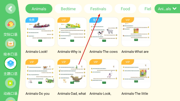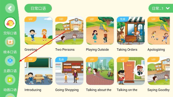 1、点击左侧导航栏的口语主题,进入日常口语主题选择界面。