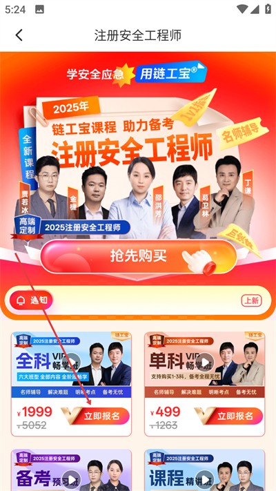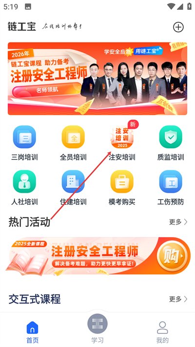 1、进入APP主界面,点击注安培训图标,进入注册安全工程师培训页面。