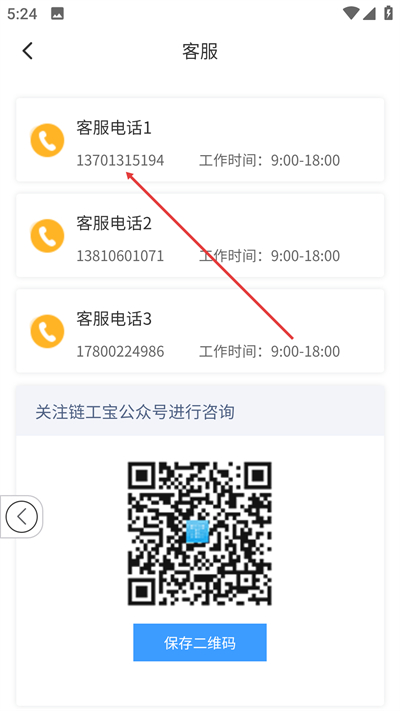 4、客服页面提供了联系电话与公众号二维码,可在工作时间内咨询课程相关问题。