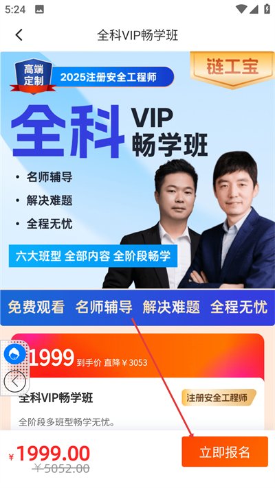 2、在课程列表中,找到目标课程,点击立即报名按钮,进入课程详情页。