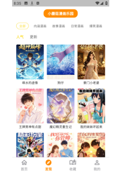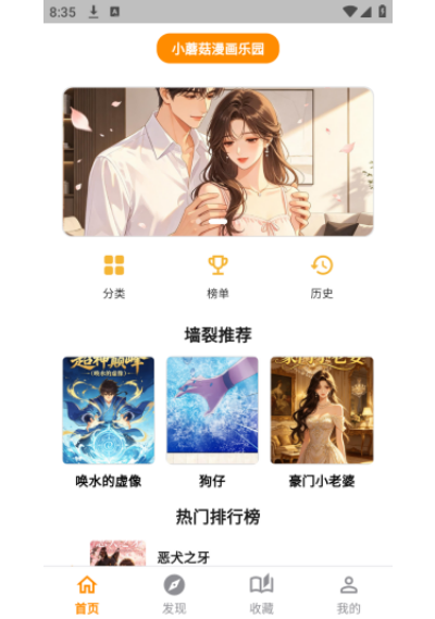 1、打开小蘑菇漫画乐园,首页展示各类风格漫画推荐。
