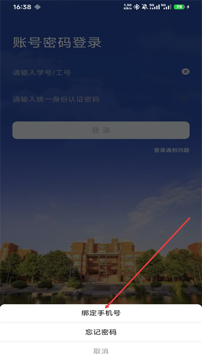 4、在微信账号绑定界面,输入账号名和密码,完成微信与校园账号的绑定。