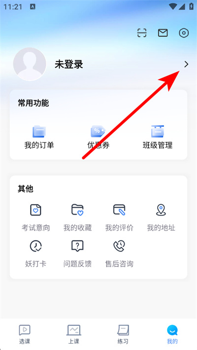 2、点击未登录右侧的箭头,进入登录/注册界面。