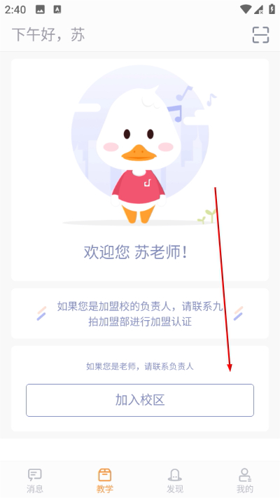 3、在教学界面点击加入校区按钮,进入机构校区的相关设置。