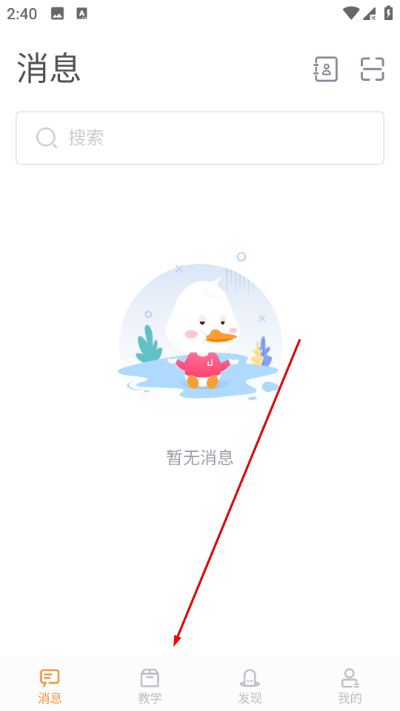 2、找到底部导航栏中的教学选项,切换到教学相关界面。