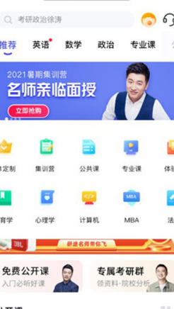 1、下载并安装研途考研app后,完成账号注册或登录操作进入主界面。