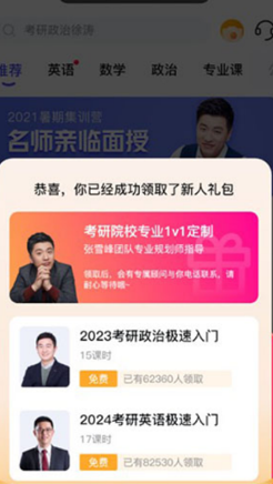 2、新用户进入后可领取新人专属礼包,内含部分免费课程与学习资源。