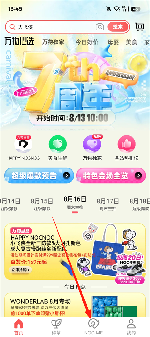 1、打开万物心选App,登录之后,点击【NOC ME】
