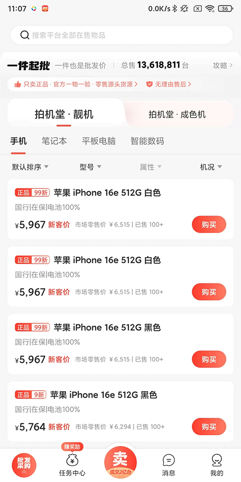 3、在拍机堂,服务更优质,买卖流程由系统判断,问题机器可以退货,专人售后也更放心;