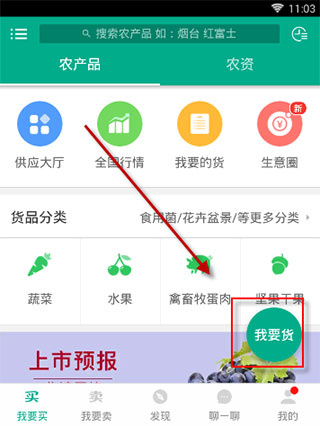 1、打开软件,点击“我要货”