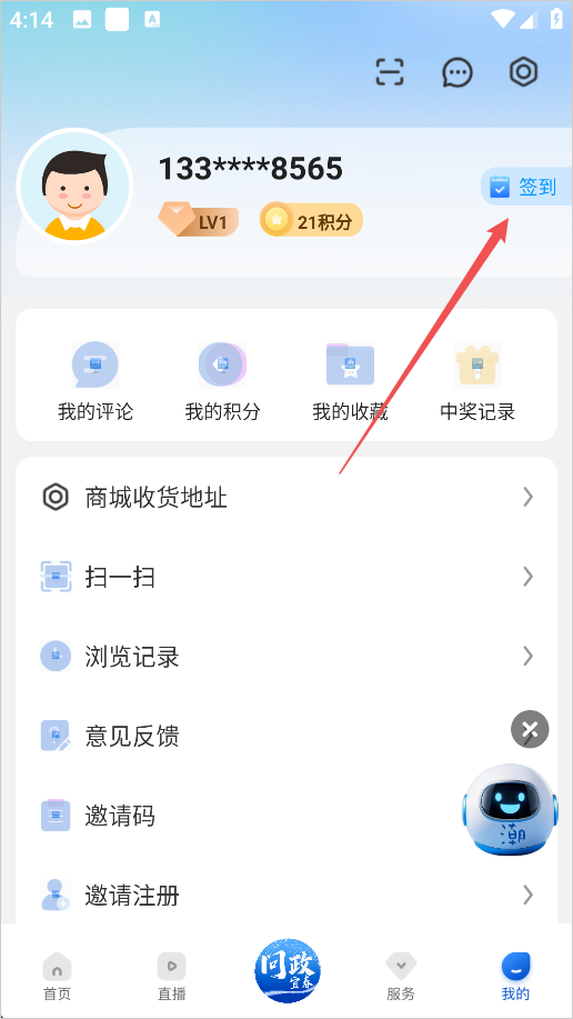 2、然后点击上面的签到就可以获得积分