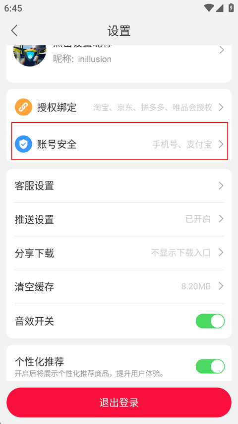 2、找到并打开账号安全;