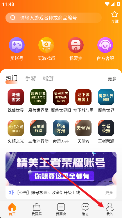 点击微信公众号下方菜单【我要交易】即可任意选择代练交易、手游交易、端游交易进行出售购买,让您享受更全面更快捷的服务!