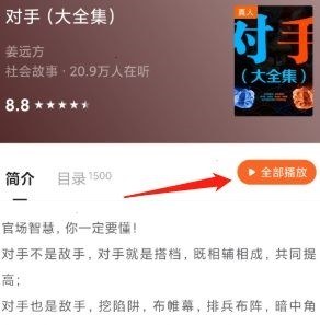 2、在小说的详情界面,点击“全部播放”。
