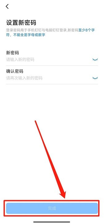 输入“新密码”、“确认密码”点击界面底部的“完成”即可。