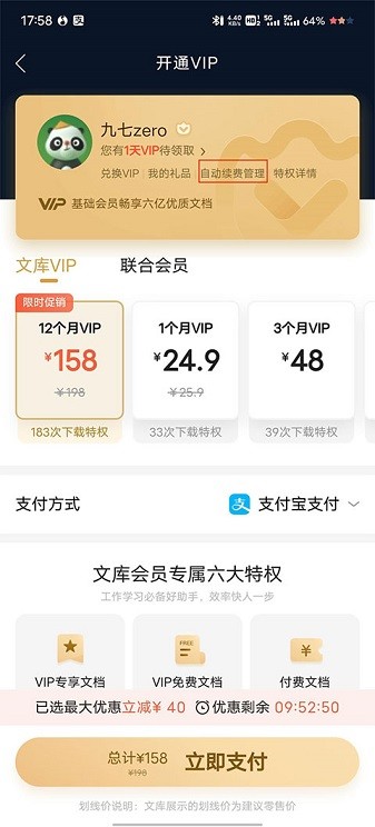 百度文库app连续包月怎么关闭