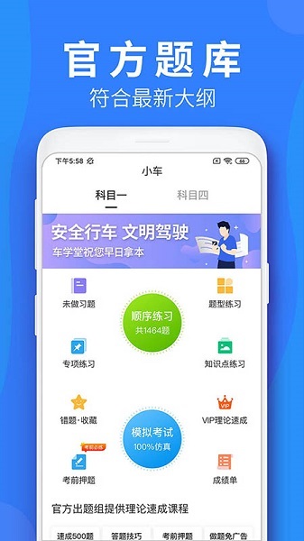 车学堂软件是知名专家精心打造的驾考应用,涵盖从科目一到科目四的所有课程内容,押题精准,专家帮你划重点,让你快速拿证,轻松考取驾照!