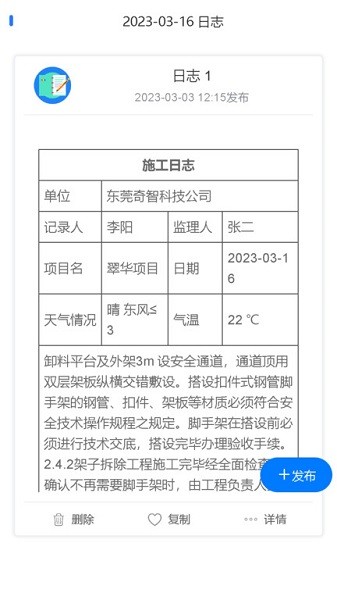2.可以方便地记录施工情况,随时轻松体验更高效的施工记录和管理经验