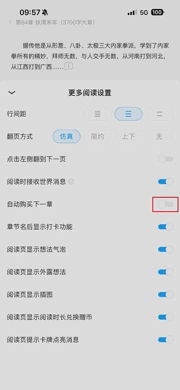 4、将底部的 "自动购买下一章" 按钮 "关闭" 即可