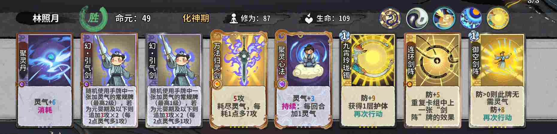如果在筑基和元婴拿到先天灵气,可以直接三动满级聚灵丹,满级引气剑,二级万法就够斩杀了。(元婴基本上是连胜加上龙鳞,活到决赛圈这些牌是能够凑齐的)