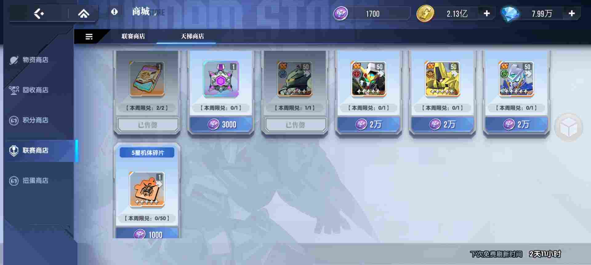 15.有些限时活动也有商店,比如抽部件的活动,现在截不到图,那个看你活动积分有多少,优先推荐限购1个的金色部件箱子,然后橙色特殊部件碎片,目的是合红色。