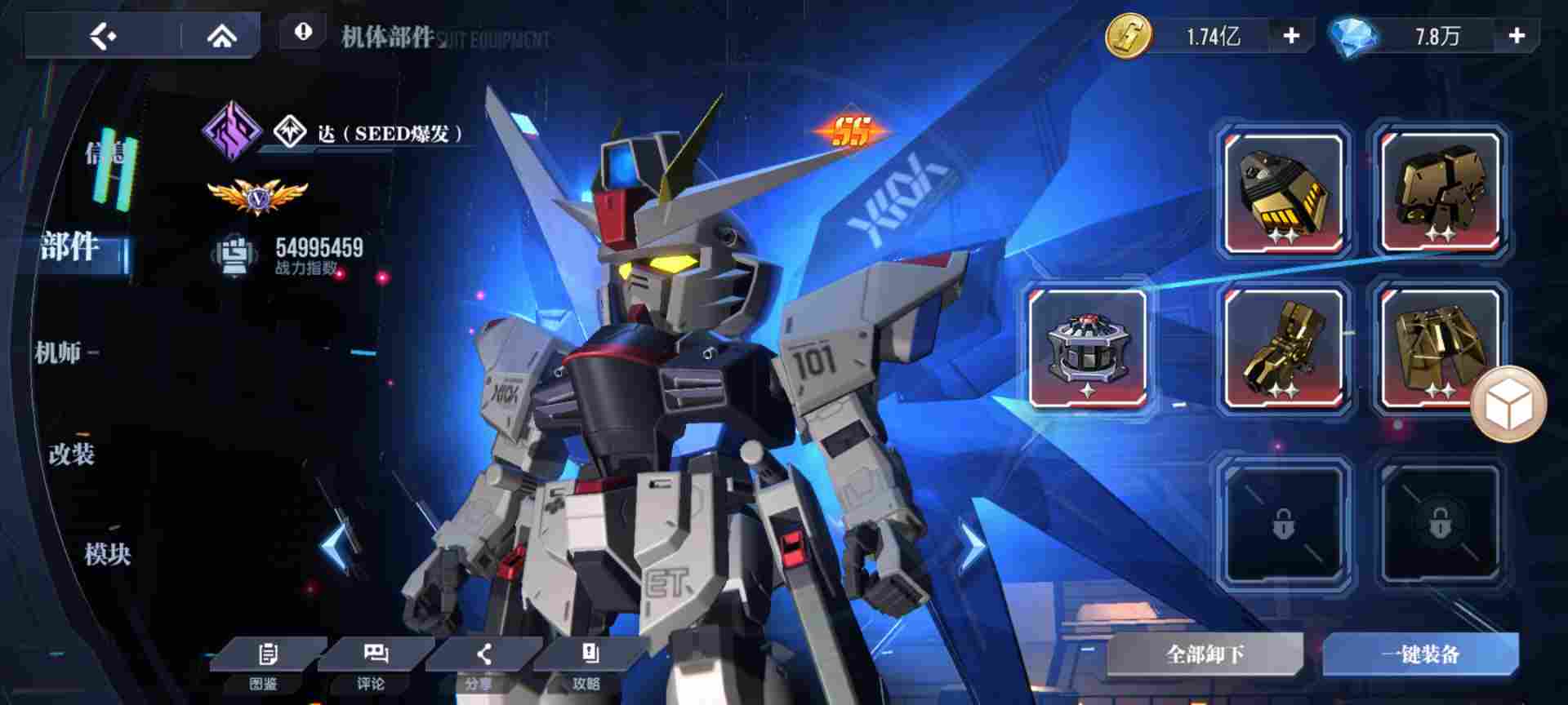 1.把最强五人的普通部件换成套,特殊部件反应炉卸下去换成加耐久和攻击高的特殊部件。