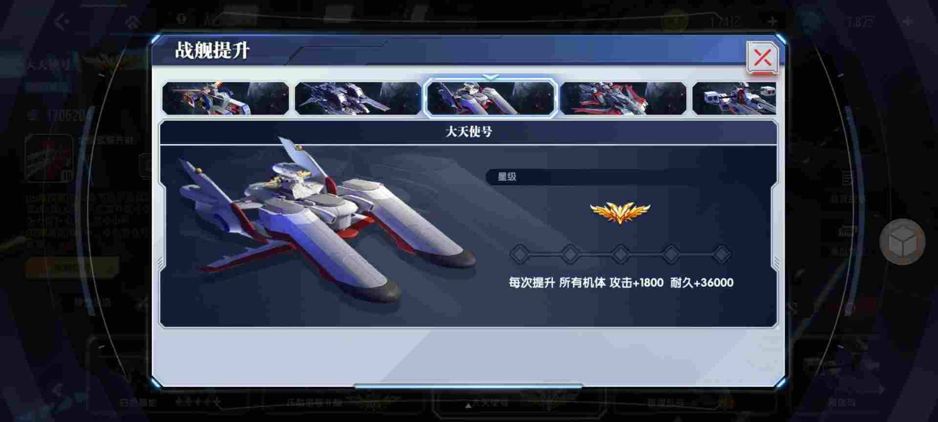 然后说战舰的战力,战舰不管你用不用,上不上场,只要升星,都会加全体的攻击和耐久,这是只要升星了就一直存在的。