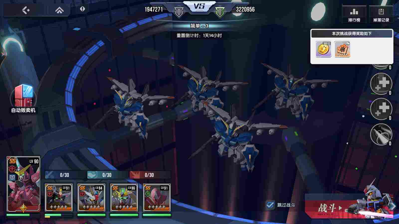由于本模式单次战斗只允许一台机体出战,并且已被击坠的机体无法再次出战,在选择机体时需要考虑2点:1是保持各类型机体都有1台出战,并根据敌人的配置切换。2是尽量选择具有回复能力的机体出战,以战养战才能走得更远。