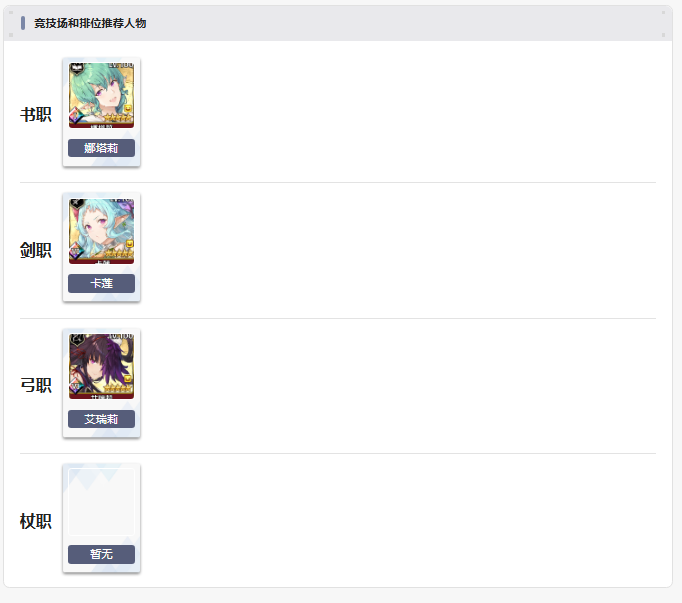 【当前角色梯队参考表】