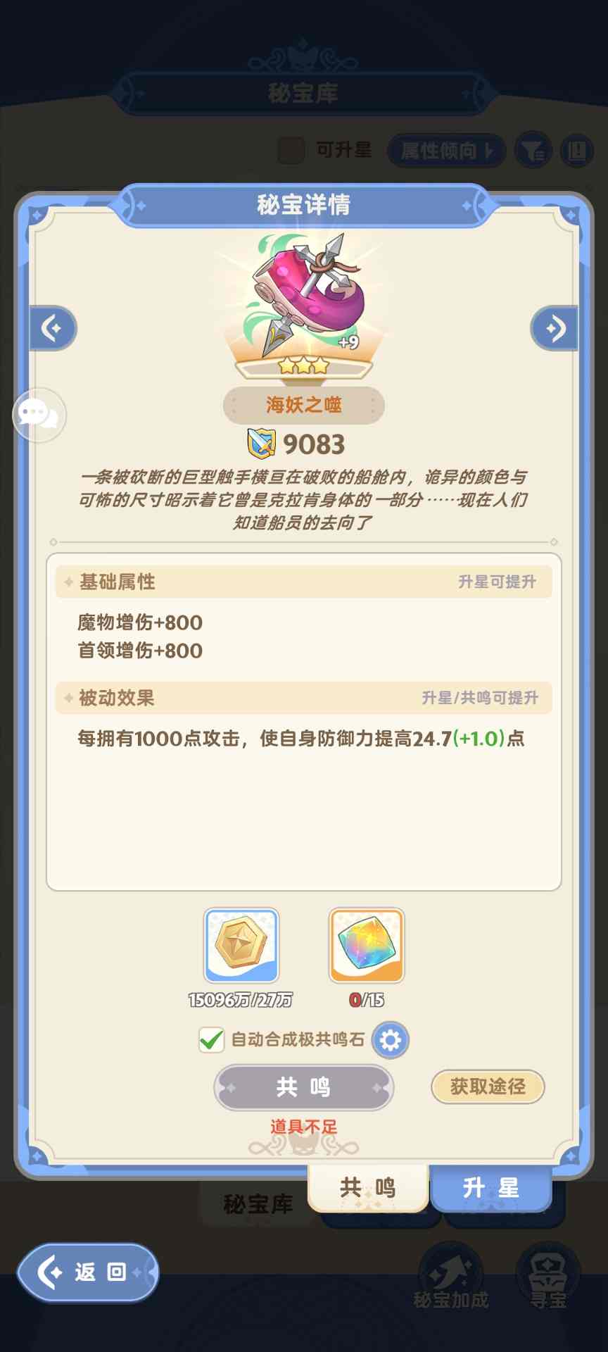 ②史诗秘宝的升星