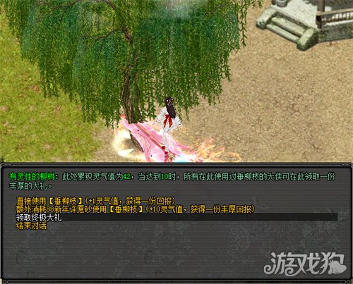大侠每天活跃度达到125点,可在活跃度系统领取一个垂柳枝,前往春日灵地直接上交或添加新年许愿砂,可获上交奖励或高阶福利,灵地达标后贡献者还可领终极大礼。