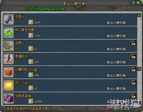活动期间,大侠使用新年许愿砂兑换钻石币开启欢乐幸运匣,收获幸运令牌、聚宝徽章,可用于兑换各种珍稀道具和精美外观。