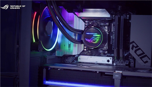ROG枪神10X采用104L ATX塔式机箱,更大尺寸机箱设计不仅大幅增加内部散热空间,为更高规格散热配置提供可能,同时还便于用户后续维护升级。内部创新采用三区独立散热设计,CPU、显卡/主板、电源均配备独立散热通道,热量排出精准迅速。