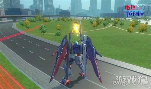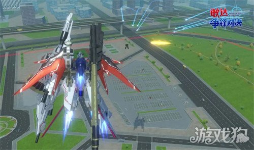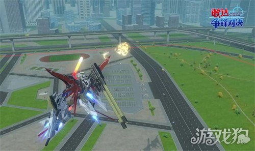 【普通射击】按下射击键。发射磁轨炮以及导弹射击并击飞目标。