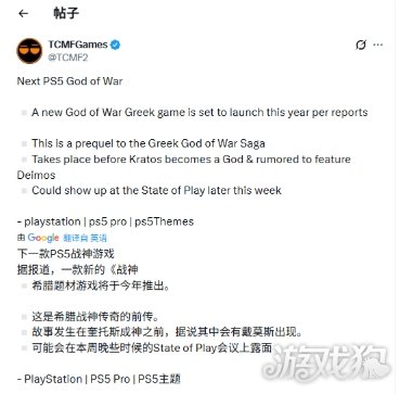 据报道,一款全新的希腊背景《战神》游戏将于今年推出