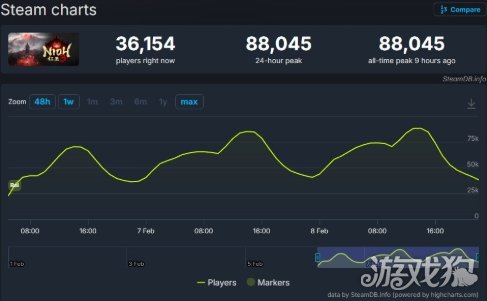 据SteamDB统计数据显示,《仁王3》Steam在线峰值为88045人,而《噬血代码2》Steam在线峰值仅为11499人,表现平平。《仁王3》也成为了光荣特库摩登陆PC平台热度最高作品。