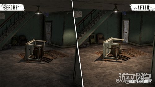 本次更新中,艾伦格地图回归到了玩家熟悉的经典面貌,赛季限定内容“艾伦格:零度计划”的相关道具与功能被移除。同时密室中可获得的道具也出现了变化,玩家可在密室中获得多合一维修套件、紧急掩体信号弹和电波干扰背包等道具。地图新增可破坏气罐,轰炸区与渡轮也再次登场。此外,本次更新还对整体建筑的室内照明进行了优化。