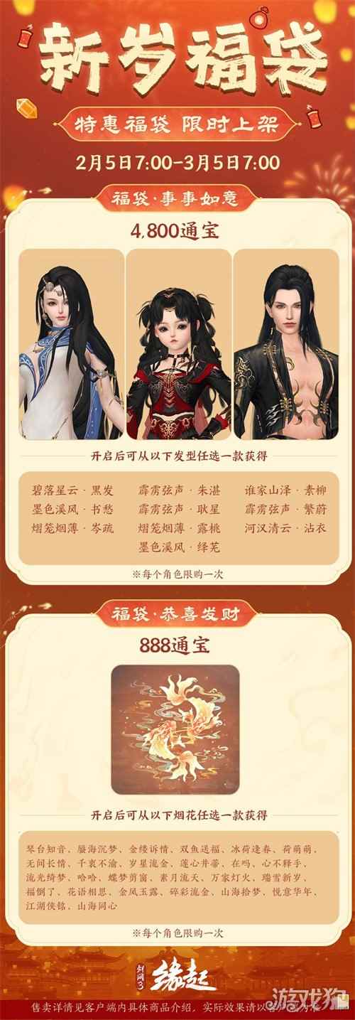 2月5日7:00-3月5日7:00限时上架,购买后绑定,单个角色限购一次。