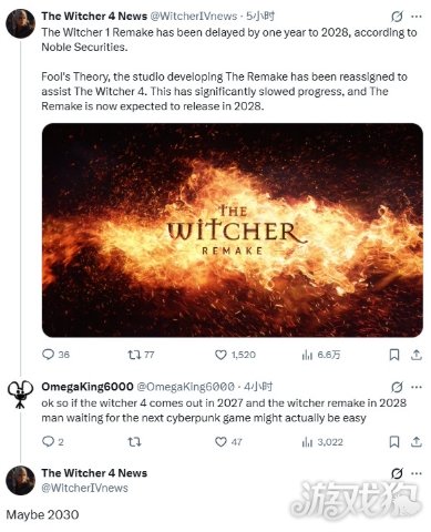 对于这个消息,有网友提问称如果报道是真的,那么《巫师4》很可能就在2027年发售?转发这个消息的推主回复说,虽然不是官方消息,但根据多个可靠消息人士的爆料,《巫师4》将于2027年第四季度发售。