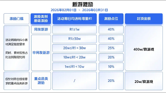 在当前行业环境下,这一激励比例已处于最高激励水平,并在投放门槛与执行难度上更具友好度,为新游冷启动和放量阶段提供了更充足的试错空间。