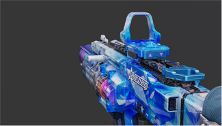 视觉够炫:枪身主体采用优雅的蓝白渐变色。在局内的高品质光影实机效果加持下,枪身能根据环境光线的强弱,折射出流动的星光。考虑到大哥们的战斗体验,我们特意在枪身中心区域(1P视角的视觉重心)采用了蓝白渐变晶石材质,确保大哥们在每一次推枪、换弹时,都能看到杰哥舞台标志性的颜色。