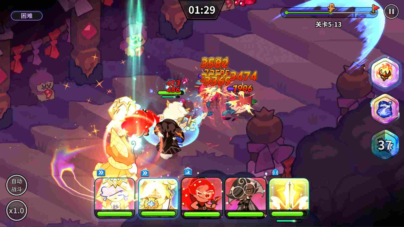 配料优先推荐5伤害减免,尤其是单前排时用伤害减免配料更加稳定。如果掉血不多或者有比较强力的恢复型饼干,也可以带5攻击加速推图速度。