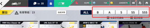 机车有5个等级,B,A,S,SS,SSS,排位赛里每个等级和同等级的车比,所以不用担心B车会被SSS车降维打击这种情况不可能发生,机车分为5种,俗的话讲,分白车,蓝车,紫车,金车,彩车,性能这一块大部分是逐级递增的,少数车可以避雷,实战不好用,接下来推荐每个等级的机车如何选择。