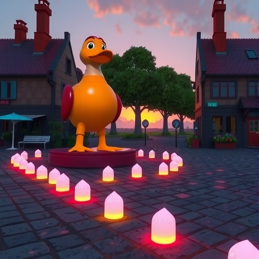 8.13紫色鸭子拍照就在紫色沙滩椅旁边