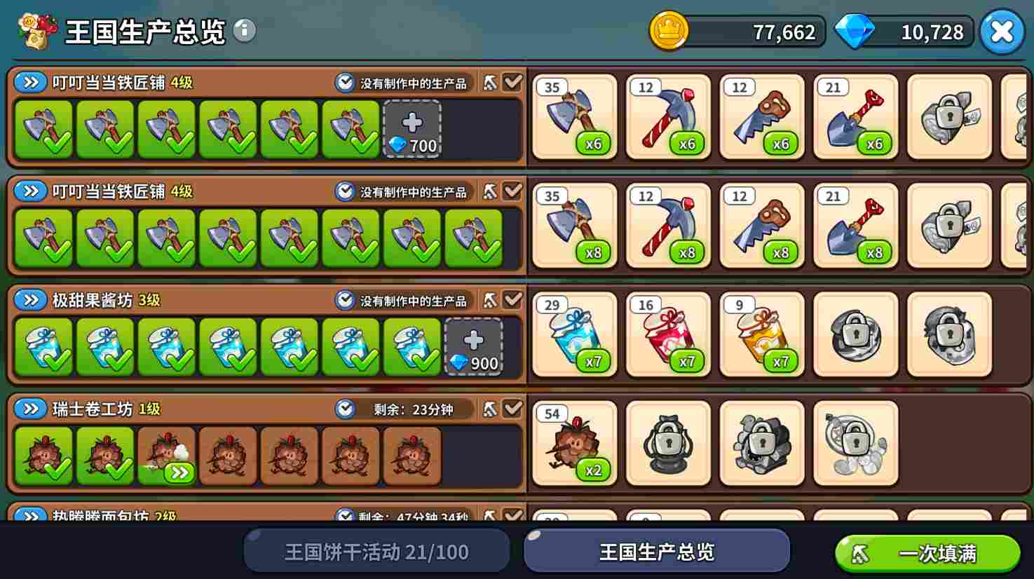 研究室一定要升等级2,解锁的王国生产总览能节约很多时间。更重要的是2技研究室能提升一些核心材料的生产速度和生产数量。
