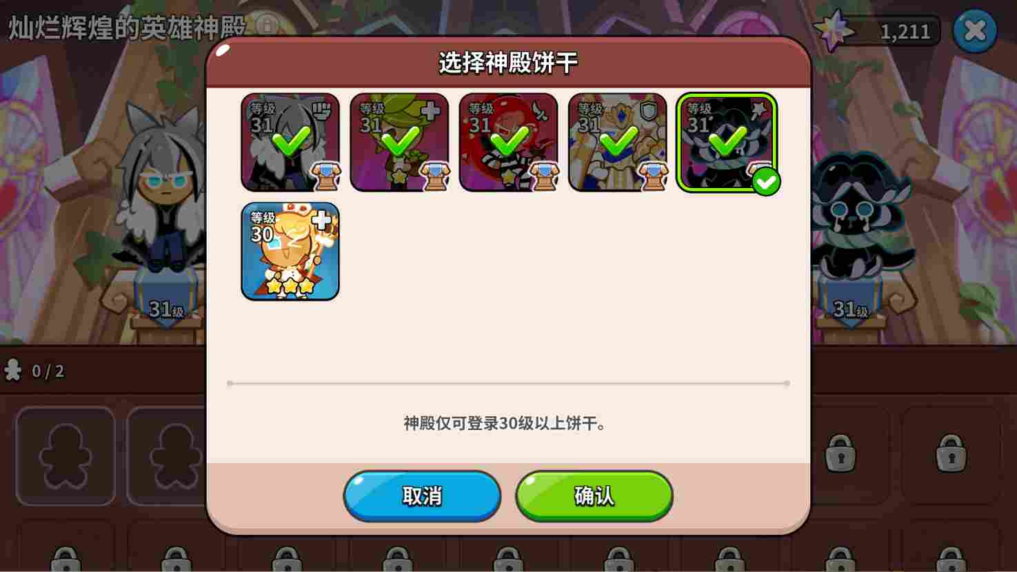 同时在我们当天人物达到30级之后,达到条件就能解锁英雄神殿了。这是一个平衡等级的系统,有后抽到但没星星升级的饼干可以放进来。