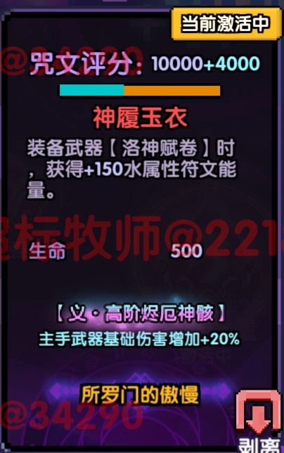 洛神赋卷:首领伤害 ,护甲穿透 ,水攻
